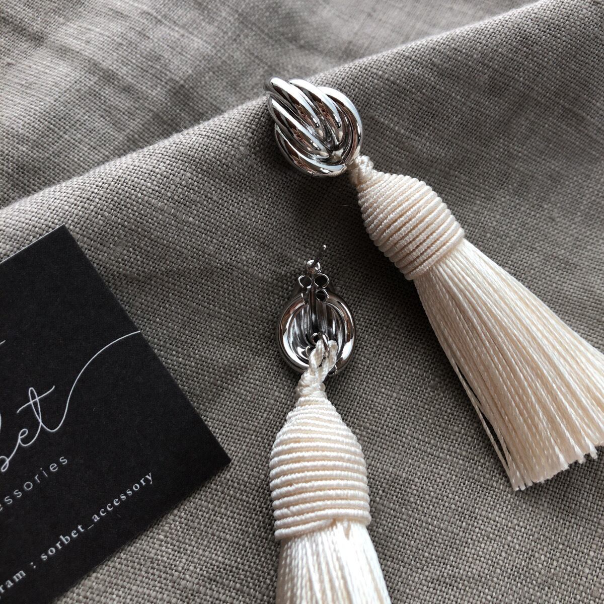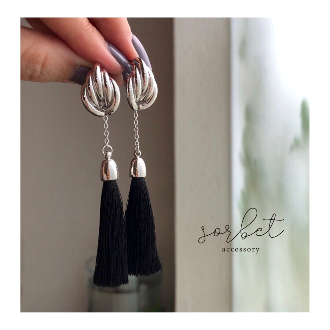 ボリューム感あるシルバーピアスに上質なタッセルを合わせた大ぶりピアス。