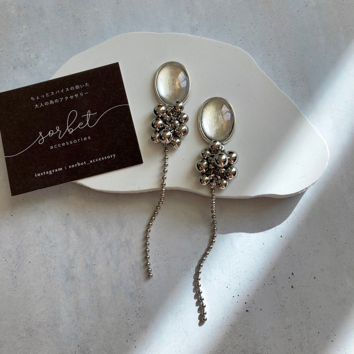 クリアカボションとシルバーでまとめたヴィンテージ感溢れるアイテム。