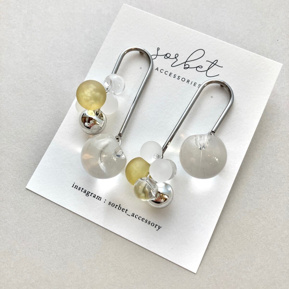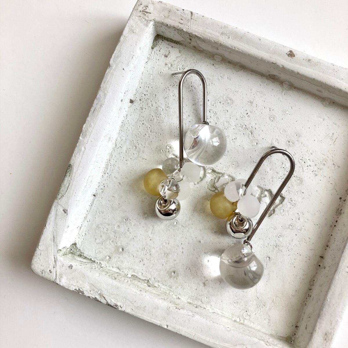 色々な種類のスズマルビーズをギュッと集めた個性的な大ぶりピアス。アンバランスなバランスが魅力です♡