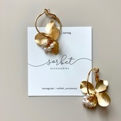 大ぶりなメタルフラワーに小粒パールを合わせたエレガントなピアスです。